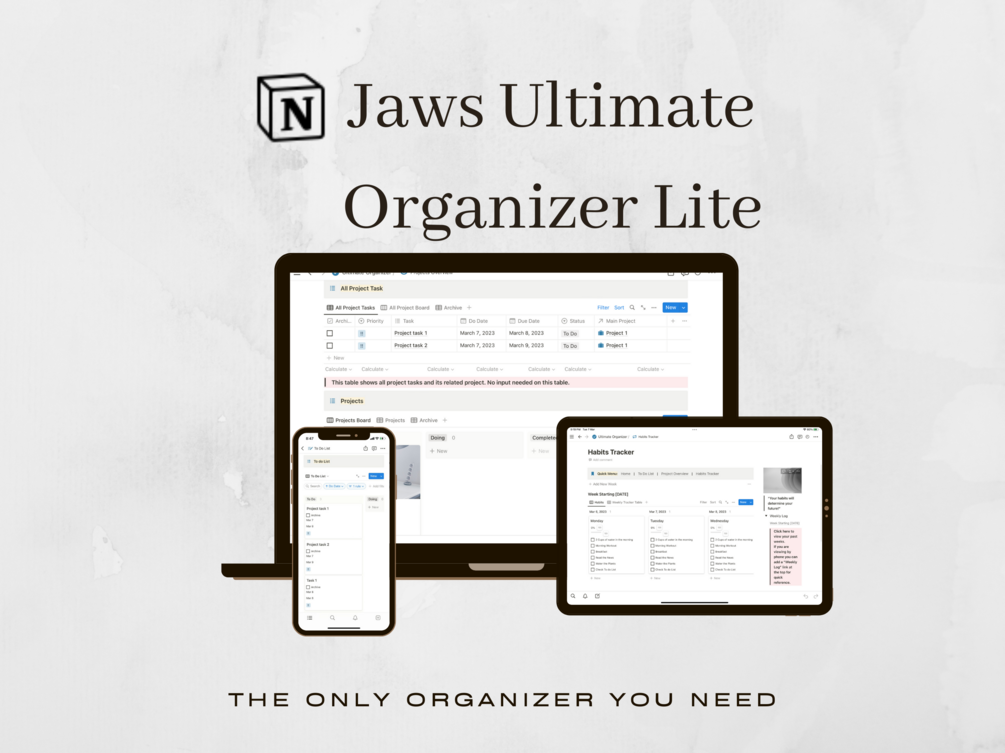 Introducing The Only Notion Organizer You Need Lite, designed for those who prioritize simplicity and efficiency. Our easy-to-use template streamlines task and time management, allowing you to effortlessly plan and organize your schedule. With all the essential features included, our organizer guarantees optimized productivity.